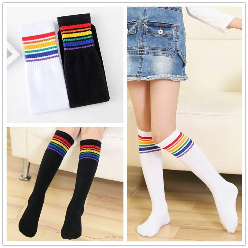 Name: Los niños de rayas multicolor tubo largo por encima de la rodilla de calcetines de algodón niños estudiantes fútbol Calcetines